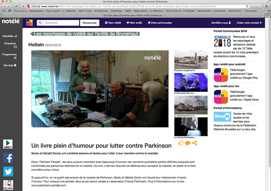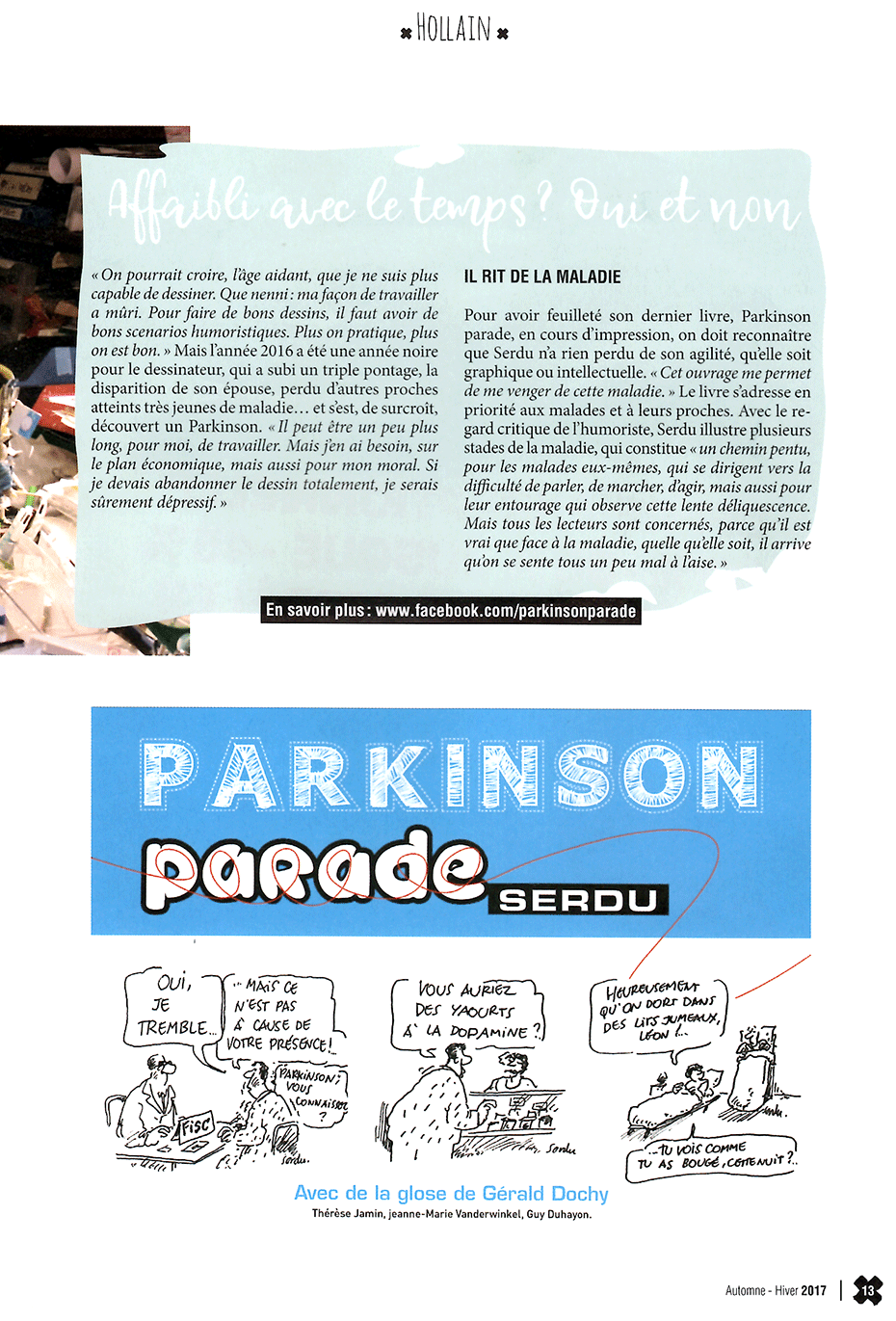 Dans “Parkison Parade”, les deux auteurs racontent avec beaucoup d’humour les moments quotidiens parfois difficiles auxquels sont confrontées les personnes atteintes de la maladie. Ce livre, c’est leur bouclier de défense pour accepter la maladie, en parler et la faire connaître autour d'eux...